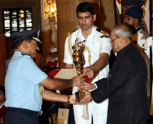 •    Air Marshal MK Malik AVSM VSM Air Officer-in-charge Administration who is also the Vice Chairman of ‘Subroto Mukerjee Sports Education Society’ received the ‘Rashtriya Khel Protsahan Puruskar’ on behalf of ‘Subroto Mukherjee Sports Education Society’ from Hon’ble President of India today at a ceremony in Rastrapati Bhawan.