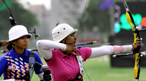 •    The women's archery team of Laishram Bombayla Devi, Laxmirani Majhi and Deepika Kumari made the quarters of the recurve event .