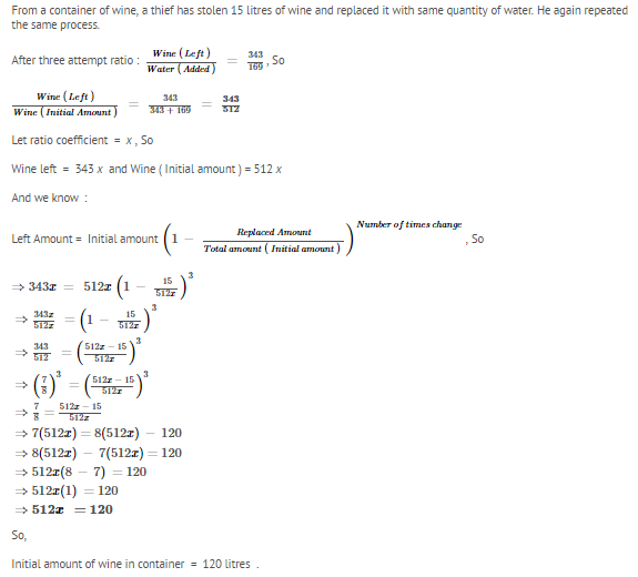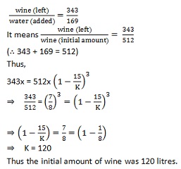7,8 difference is 1, that is 1 quantity is 15 litre so initial quantity is 15*8= 120 litre