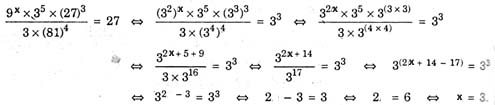 If  \(\cfrac{9^x\times 3^5 \times (27)^3}{3\times (81)^4}\) = 27, then the value of x is?