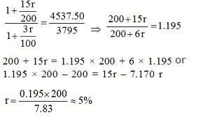 An amount becomes \(\unicode{x20B9} \)3795 in 3 years and \(\unicode{x20B9} \)4537.50 in 7 \(\cfrac{1}{2}\) years on simple interest. Find the rate of interest.