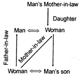 Man and woman both have mother-in-law who are mother and daughter respectively.
