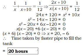 \(\therefore\) B pipe can fill a tank = x + 10 hours
