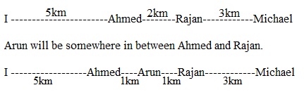 Ahmed=5km, Rajan = 7km,so 6km is correct.
