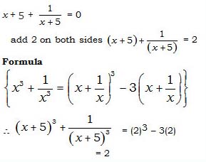 If  \((x+ 5) +\cfrac {1}{(x+5)} =0\)then what will be the value of   \((x+5)^3\)+ \(\cfrac{1}{(x+5)^3} = ?\)