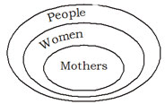 The above diagram represents the best relationship among people, women and mothers. [All mothers are women; All women are people].