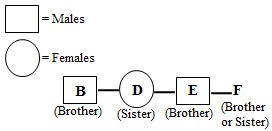 B is the brother of D and D is sister of E. E is brother of F. How is F related to B?