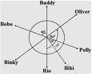 Seven friends Oliver, Rio, Polly, Bobo, Bibi, Binky and Buddy are sitting in a Circle. Oliver, Rio, Polly, Bobo, Binky and Buddy are sitting at equal distances from each other. Polly is sitting after two places right of Binky, who is sitting one place right of Bobo. Oliver forms an angle of 90°  degrees from Bibi and an angle of 120° degrees from Rio. Rio is just opposite Buddy and is sitting on the left of Bibi.