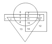 In the Venn diagram below, Circle represents sports-persons, Square represents unmarried persons, Triangle represents women and Rectangle represents educated persons. Each section is numbered. Study the diagram and answer the following question.