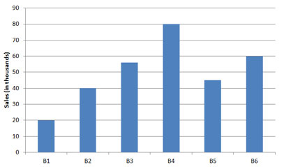 Direction: Sales of books (in thousands) from six branches (B1, B2, B3, B4, B5, B6) of a publishing company are given below. Study the graph and the following questions.